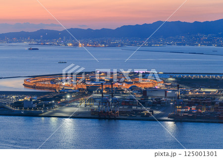大阪・関西万博の夢洲の夕景(大阪府大阪市此花区)