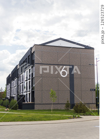 Shot of the stylish, modern, urban, residential suburb where buildings have ergonomic design and vivid colors