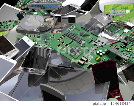 電子機器の基板、部品などから資源回収 リサイクル イメージ