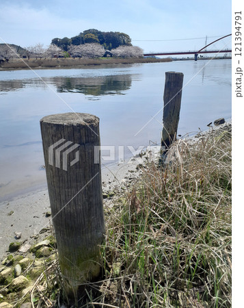 川辺の木の杭