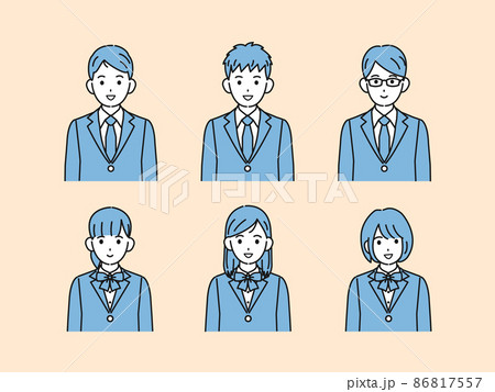 学生 中高生 高校生 中学生 男女 ブレザー 上半身 笑顔 イラスト素材
