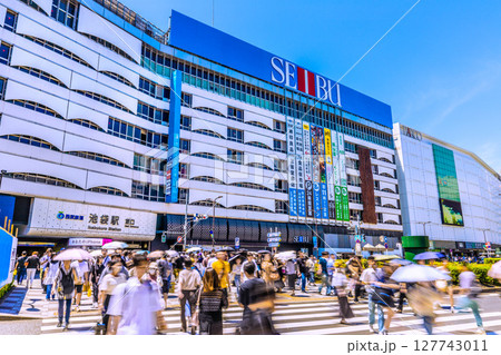 日本の東京都市景観6月22日。 池袋駅東口などを望む
