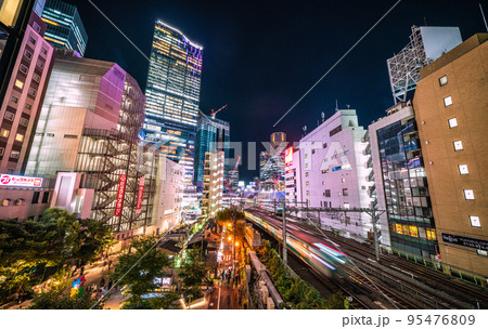 日本の東京都市景観 渋谷駅や渋谷スクランブルスクエア、のんべい横丁などを望む=10月20日