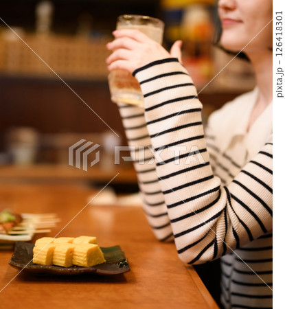 居酒屋でお酒を飲む女性