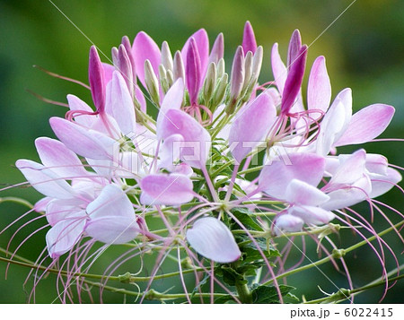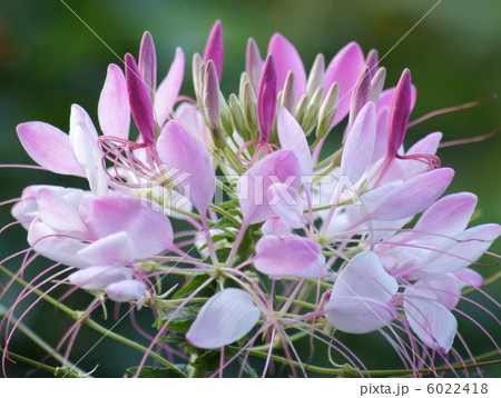 酔蝶花と呼ばれるクレオメの桃と白と紫色の花
