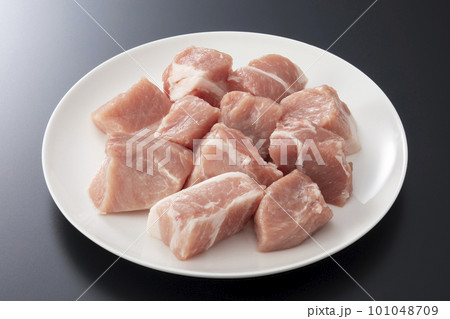 食品トレーに入った豚角切り肉