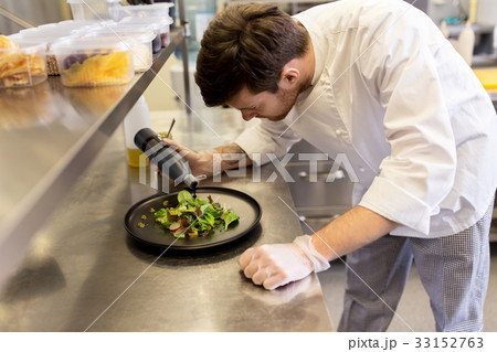 male chef cooking food at restaurant kitchen
