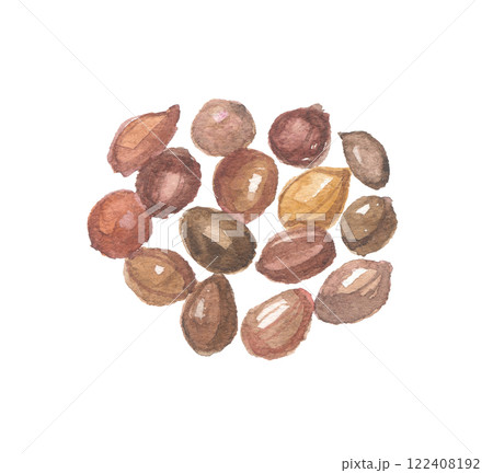 水彩で描いたサネブトナツメの種 酸棗仁 サンソウニン
