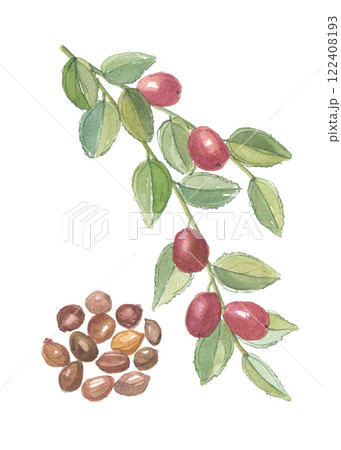 水彩で描いたサネブトナツメ 酸棗仁 サンソウニン