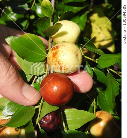 自然 植物 ナツメ、六月頃に花が咲き九月には実が熟します