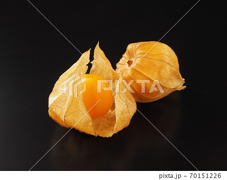 食用ほおずき 黒背景で