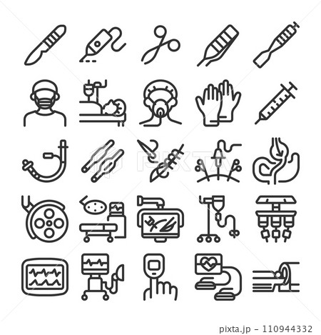 シンプル イラスト 医療機器のアイコンセットイラスト
