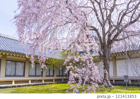 春の京都 醍醐寺 霊宝館の枝垂れ桜 醍醐深雪桜