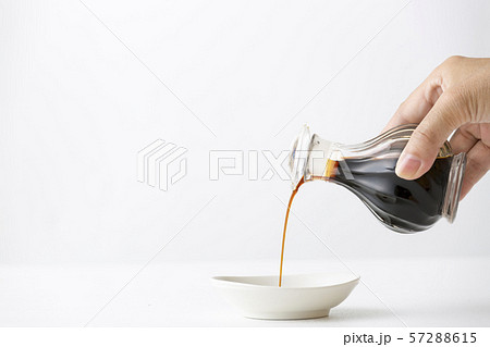 皿に醤油を注ぐ醤油の卓上瓶