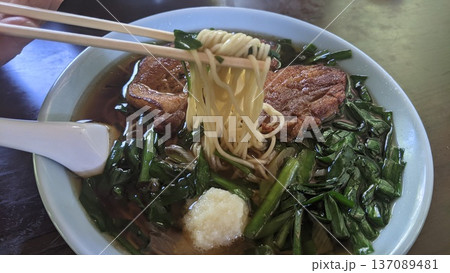 コシと舌触りのよい低温熟成『細ちぢれ麺』に鰹だしと煮干しをベースにした醤油味… 秋田ラーメン