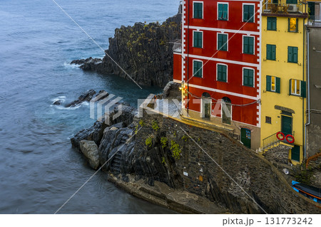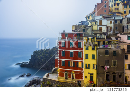 イタリア・チンクエテッレ 断崖に立ち並ぶリオマッジョーレの家々 / Riomaggiore