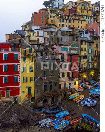 イタリア チンクエ・テッレ 【リオマッジョーレ】日没直後 / Riomaggiore, Italy