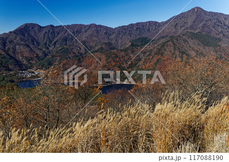浅草岳山頂から見る田子倉湖と鬼ヶ面山