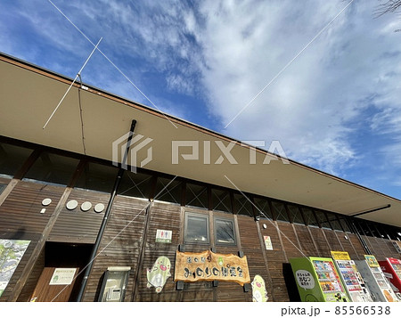 北杜市白州町、道の駅はくしゅうの三角屋根の窓に太陽の光が入る