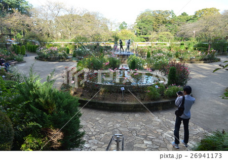 里見公園の秋バラとベンチ(10月)千葉県市川市
