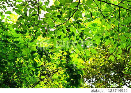 新緑の頃の丸い葉の重なり合う様子