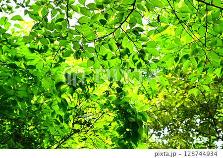 新緑の頃の丸い葉の重なり合う様子