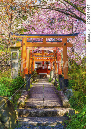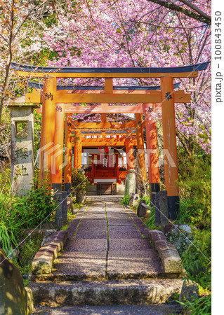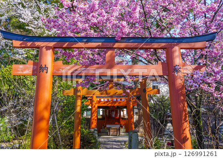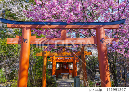 平野神社の出世導引稲荷社と満開の桜