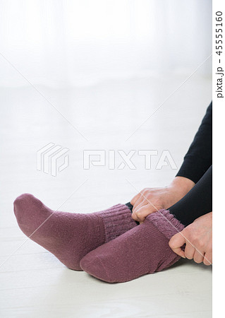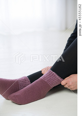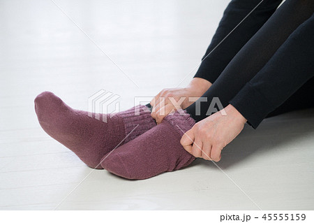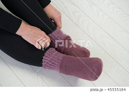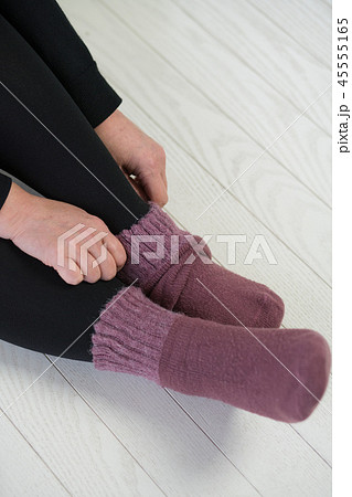 靴下を重ね履きする冷え性の若い日本人女性