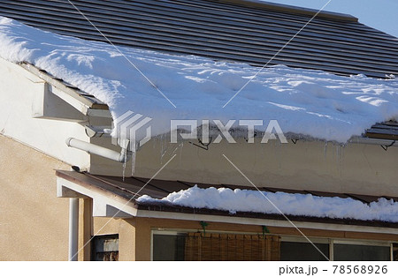 屋根の雪と雨どい 屋根の雪による雨樋の破損