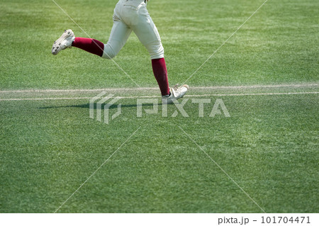 野球の試合中にピッチャーに牽制され1塁へ戻るランナー