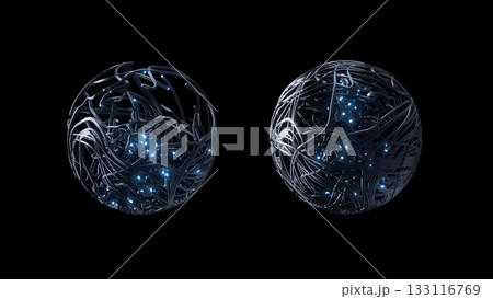 Two illuminated globes on dark background symbolize network redundancy and unity