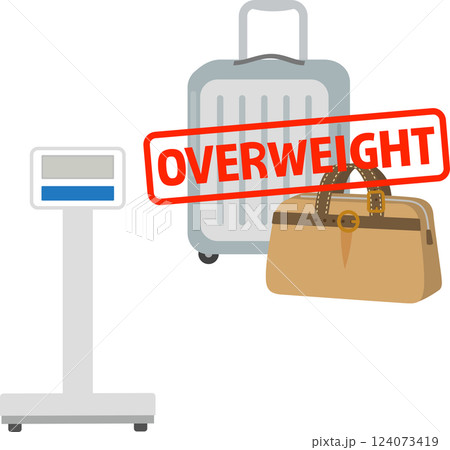 スーツケースと荷物はかりとOVERWEIGHTの文字