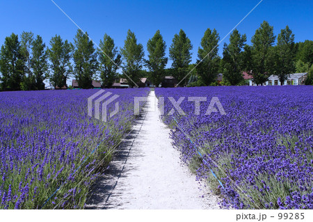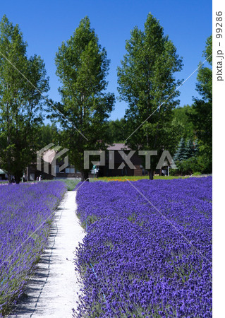 富良野風のガーデンの野の花の散歩道の初夏の爽やかな風景