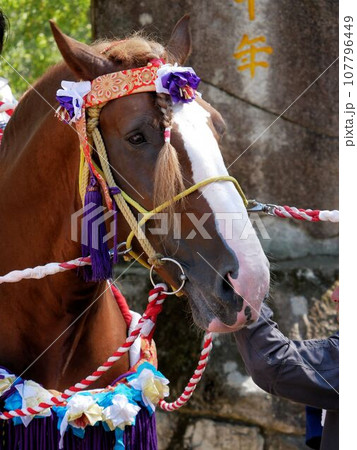 野原八幡宮秋の例大祭 神事に備える飾り馬 (熊本県荒尾市)