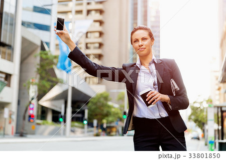 Portrait of business woman catching taxi