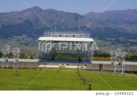 春の南阿蘇 青空の野外ステージ アスぺクタと阿蘇五岳