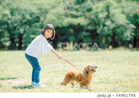 秋の公園の芝生広場で遊ぶ女の子の後姿