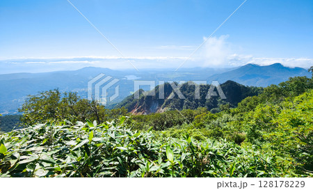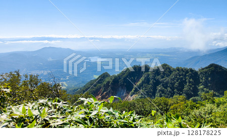 池の平温泉アルペンブリックスキー場から見た斑尾山と野尻湖