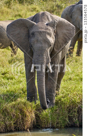 水を吸い上げるマサイマラのゾウ・躍動する瞬間