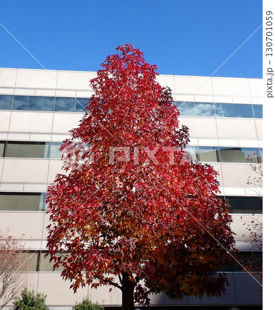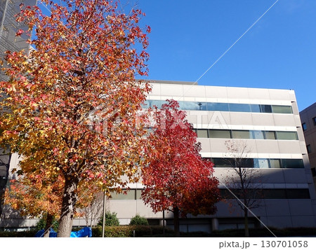 野村不動産横浜ビジネスパークの紅葉したモミジバフウ