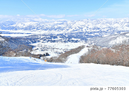 野沢温泉スキー場上からの景観。