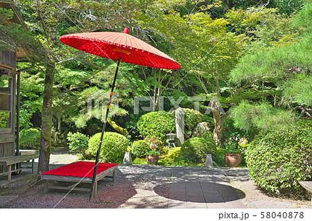 日本庭園 野点傘 春 桜 鎌倉ぼたん園