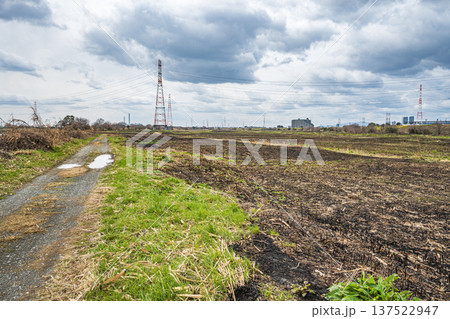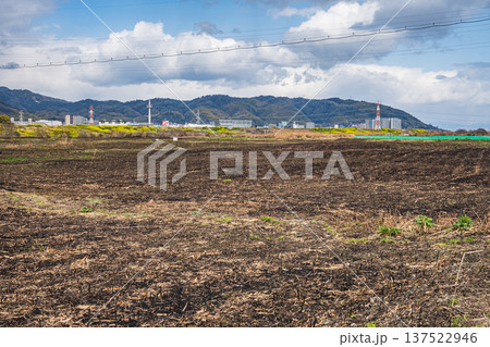 淀川右岸野焼き後の河川敷風景 大阪府高槻市
