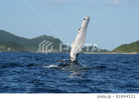 ザトウクジラのブリーチング 沖縄座間味島