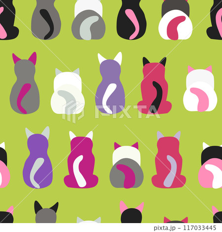 Seamless pattern with cute kitten print. Different scandy cats on color background. Scandinavian style illustration for kids. Vector illustration for fabric, textile, wallpaper, home clothing, pajama