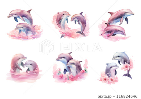 Dolphin Couple Collection Bundle Set Isolated on a Transparent Background