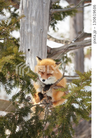 かわいいキツネが木の上でお昼寝する癒しの光景(北海道)