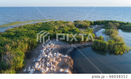 white pelicans in Danube Delta, Romania
