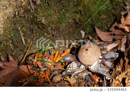 ツチグリ 森の落ち葉と星型キノコ