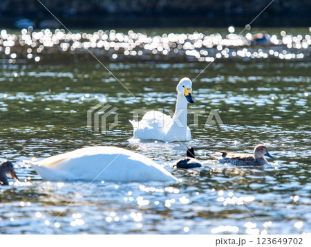 首都圏の荒川で越冬する優雅で美しい白鳥たちとカモ
